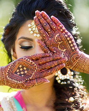 • Bridal Mehendi Service: When you hire our mehendi artists for your wedding functions, you don't have to go anywhere. GetYourVenue, the top wedding planner in Delhi provides talented mehndi experts that visit your place as per your request. Or you can make arrangements to have our mehndi artist visit your wedding venue in Delhi NCR. Our bridal mehndi services include Indian, African, Arabic, Pakistani, Bangla, Floral, Indo-Arabic, Moroccan, Rajasthani, Mughlai, Multi-colored & Gujarati designs. From engagement functions to Sangeet cum Mehendi nights, to wedding ceremonies, we offer mehendi designs for every event.