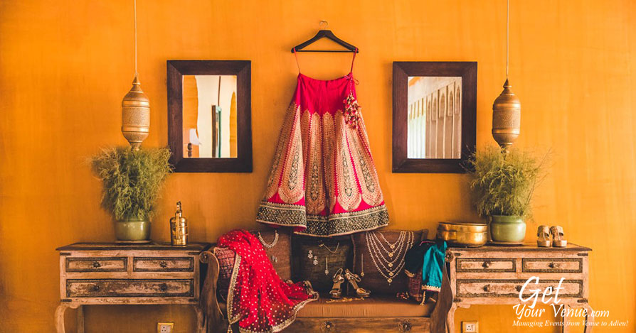 When you hire GetYourVenue for your wedding, you get a comprehensive, personalized package of bridal and groom wear in Delhi. By this, we don’t mean the mix & match approach that you see in shopping markets or online stores. No! We’re talking about a never-before-seen customized package of wedding wear that is 100% customized to fulfill your needs and covers everything from the necessities (clothing, footwear & accessories) to the extravagances (add-ons, jewelry & appurtenances). Ladies! You don’t have to panic about which jewelry is right for your ensembles. Grooms-to-be! You need not worry about which turban or footwear matches your attire perfectly. All in all, GetYourVenue promises to make you the cynosure of all eyes.