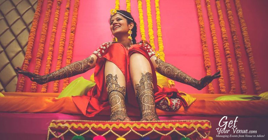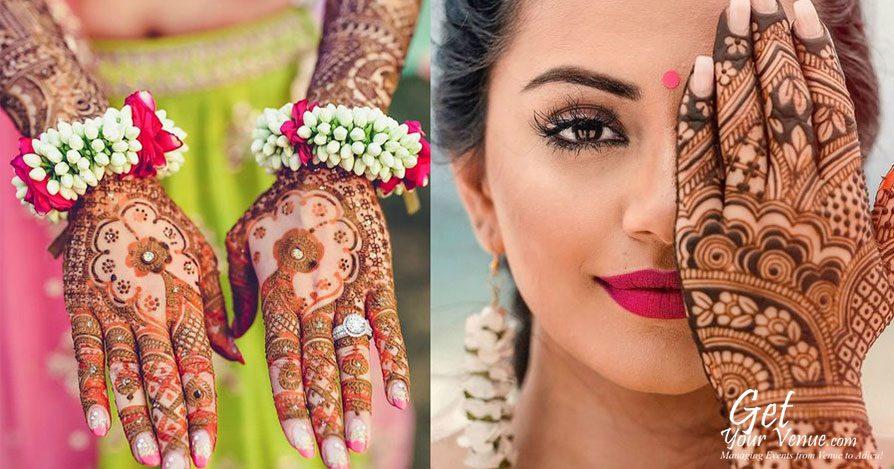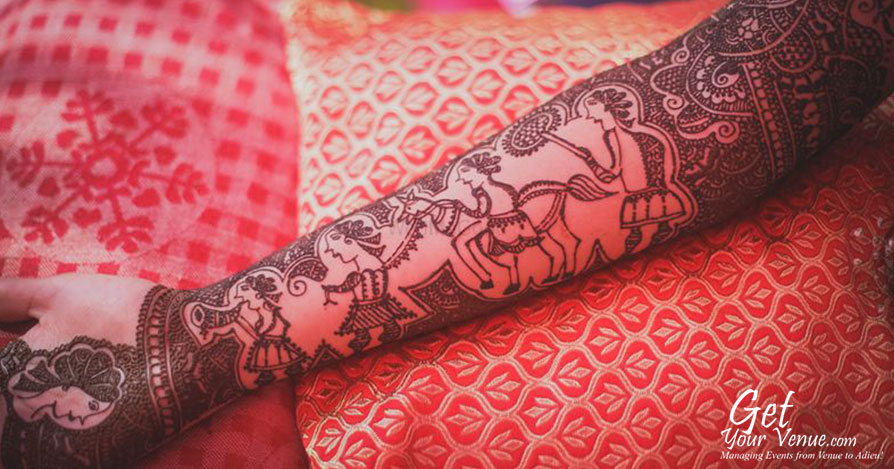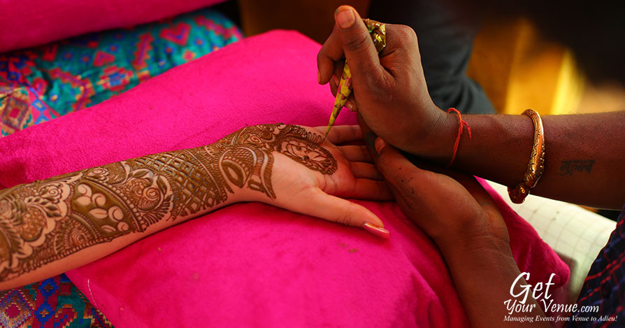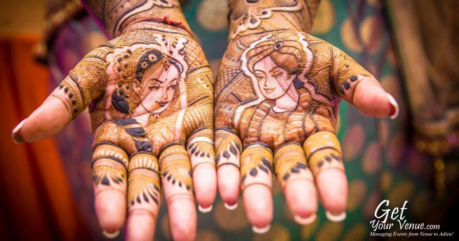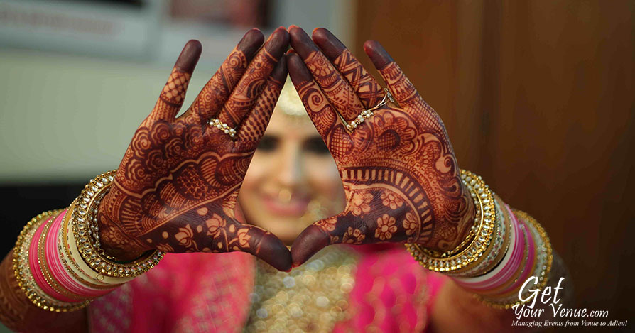 Surely there is something utterly magical about applying mehndi, especially about rubbing your palms together and removing the dried silt off your hands. Maybe, it’s the feeling of being adorned and treated like a queen at your mehndi ceremony. Maybe it’s the euphoric and blissful ambiance that envelopes the event. Or maybe, it’s the exotic patterns in elegant shades of red, orange and brown, with every cogitable color in between, peeking through the blackish green paste. Well, whatever it might be, if it brings a smile on a to-be-bride's face or aggrandizes her wedding celebrations by even the slightest, GetYourVenue will offer the service.