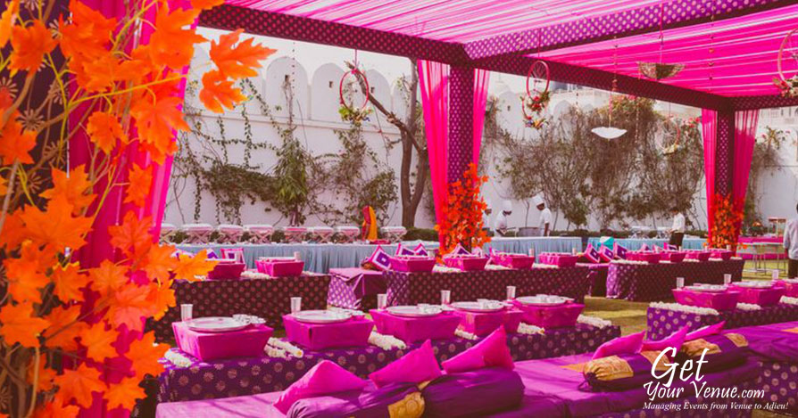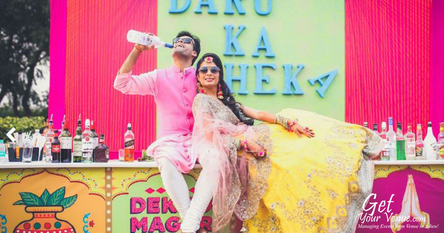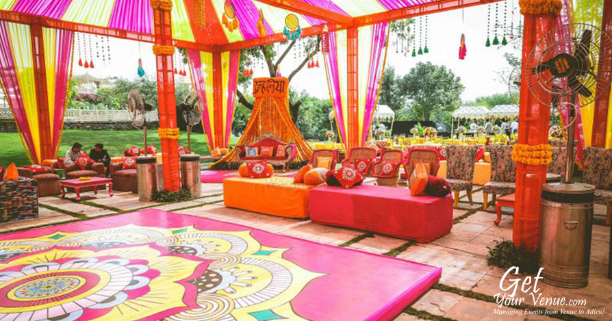 Today, a mehendi event is more than a get-together of old ladies singing folk songs accompanied by a dholak and spoon. Modern mehendi functions are about a bride and her girlfriends saying farewell to an era gone by, as well as celebrating the start of her new blissful journey. And it is to give this event complete justice that GetYourVenue provides top-notch service.