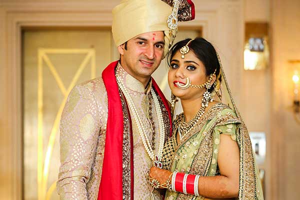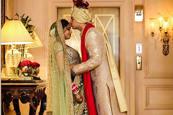 The wedding of Indian Cricketer Mohit Sharma & Shweta Jaiswal was a starry affair. While the bride decided to don down the bottle green lehenga, Mohit decided to keep his look subtle yet royal. Complimenting each other in every way, we are drooling over the sizzling chemistry of this perfect couple and the way they are exchanging looks at the mandap.