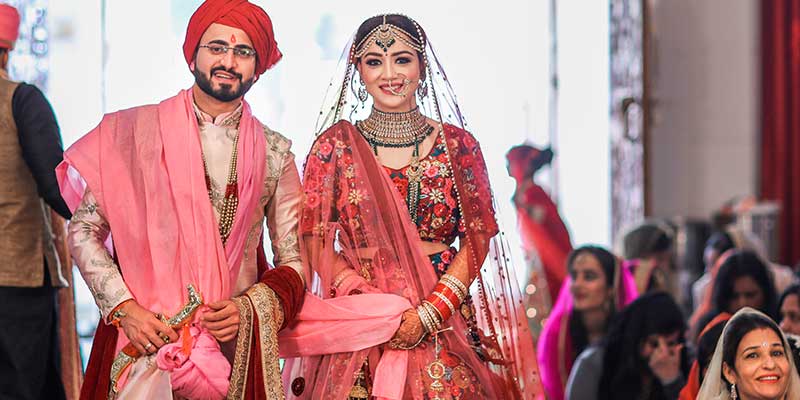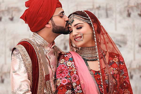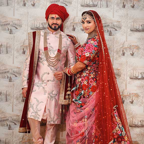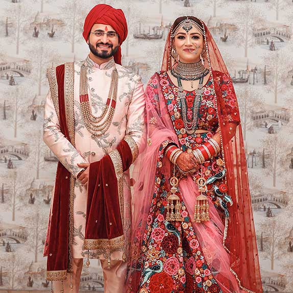The couple is shining bright in their royal attire and looking absolutely surreal. While the bride donned the heavily embroidered lehenga with multiple hues of pink and red, the groom is shining bright in a beautifully designed sherwani with red pagdi. The flawless makeup, striking jewellery and designer attires is making us totally gushing over this bride. Their wedding was truly an exquisite affair and we just love the bond and chemistry between the couple.