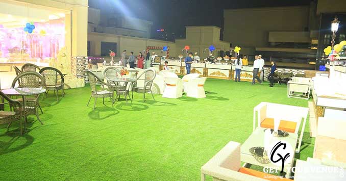 3G Diamond: This air-conditioned hall in Ghaziabad provides you with all modern amenities and luxuries to enjoy a relaxing time celebrating your life events. The 5,060 sq ft space area allows you to host an event for 450 guests with ease.