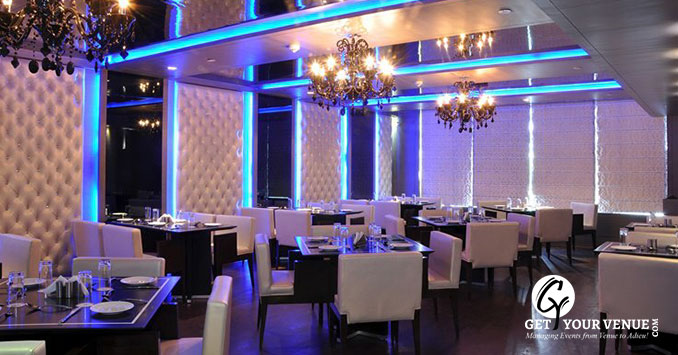 Restaurant- This restaurant with aesthetically designed interiors in Delhi can accommodate up to 60 guests.
