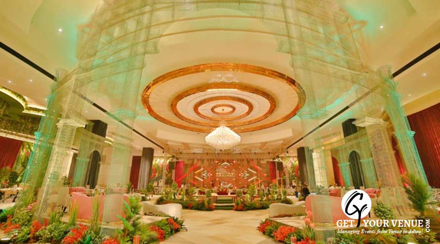 The vast expanse of verdant lawns adds subtle charm to your wedding venue. It ensures your esteemed guests having enough room to meet and greet without bumping into each other. Lovely lighting effect and floral décor make the space more elegant.