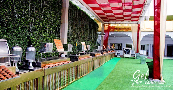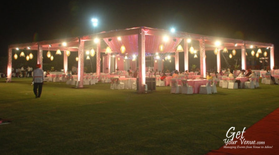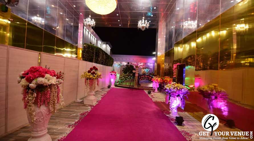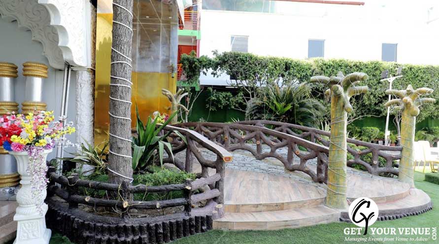 The vast expanse of verdant lawns adds subtle charm to your wedding venue. It ensures your esteemed guests having enough room to meet and greet without bumping into each other. Lovely lighting effect and floral décor make the space more elegant.