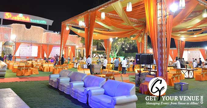 Lawn: Spread over the area of 7,602 sq. ft., Ashirward banquets provide you with ample space to entertain 600 guests. The aesthetically landscaped lawn offers you all the ease and convenience to host your events.