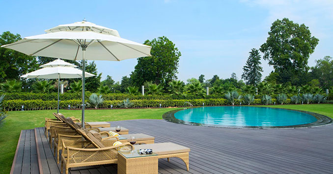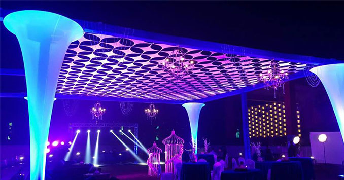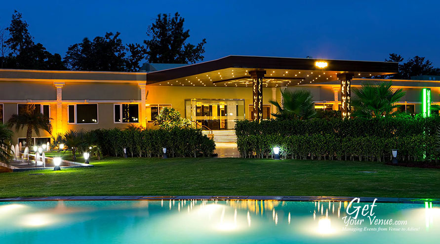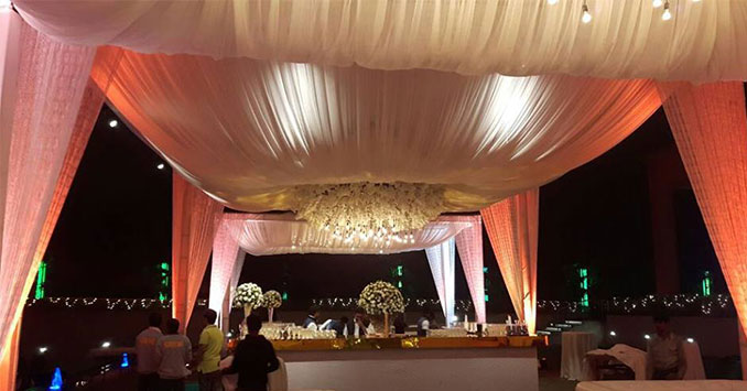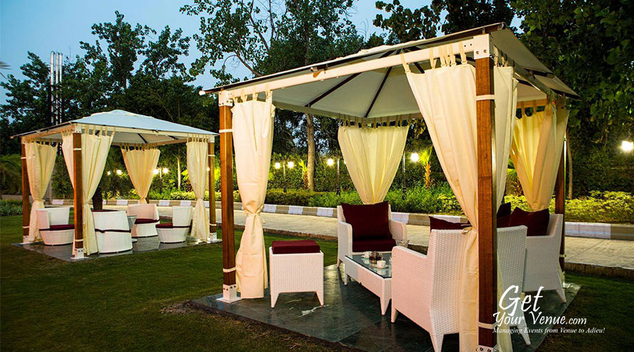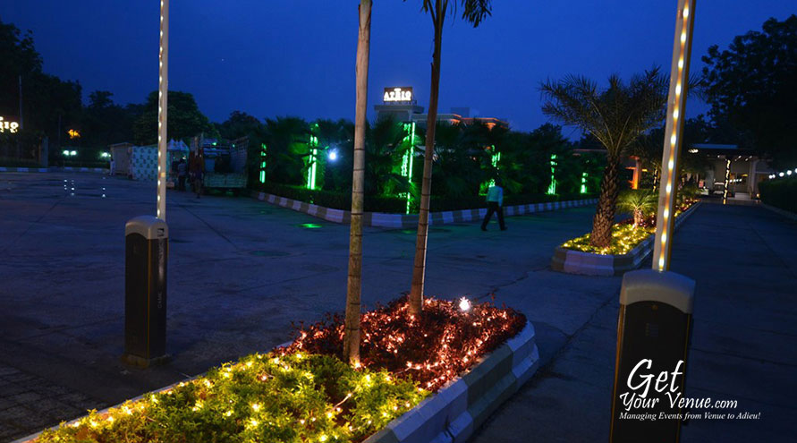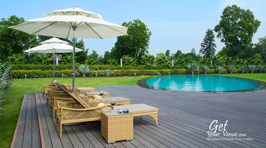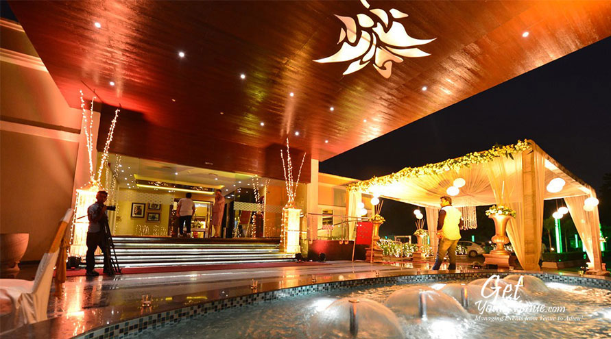 Poolside – If an evening soirée is what you’re planning, then choose this poolside area. This 6000 sq ft large area can accommodate 100 to 300 persons and offers a beautiful setting for cocktail parties, mehndi rasams, birthday parties, and other such functions.