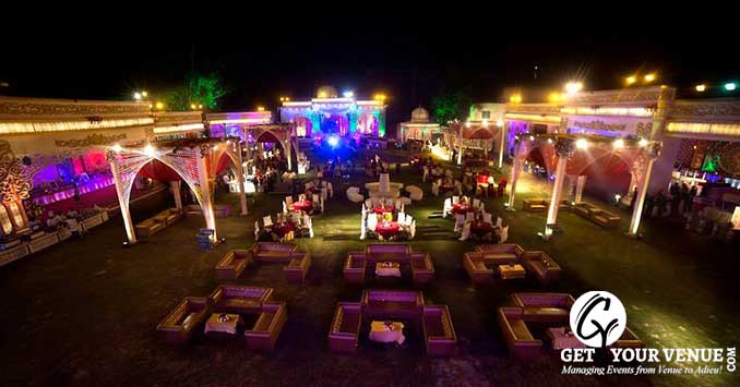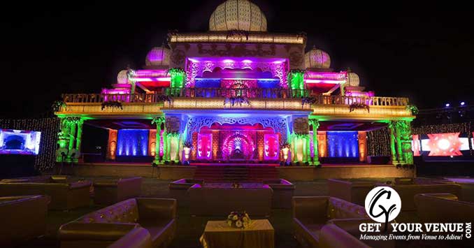 Lawn: Spread over the sprawling space of 6,500 sq. ft, this lawn provides you with ample space to host a party for 500 guests. The lawn comes with a parking space of 100 cars.