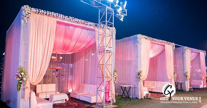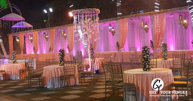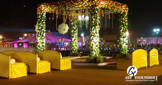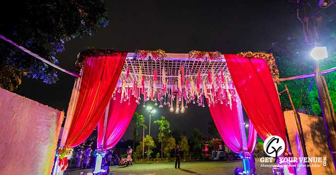 Garden side- It has a capacity of up to 600 people which is well suited for weddings, parties, events, and pre or post-wedding ceremonies.