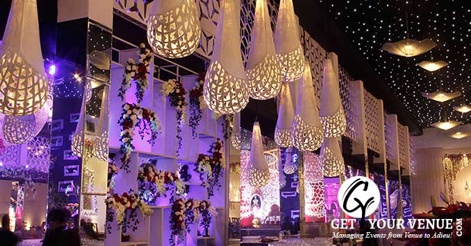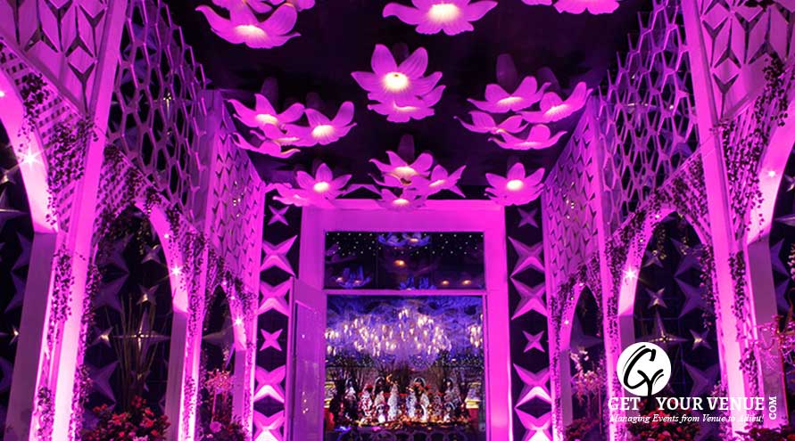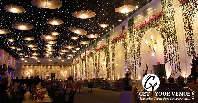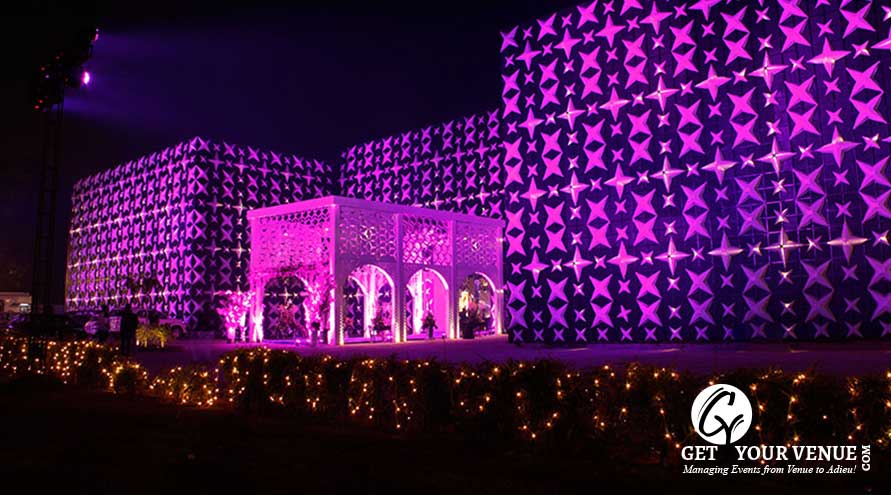 The vast expanse of verdant lawns adds subtle charm to your wedding venue. It ensures your esteemed guests having enough room to meet and greet without bumping into each other. Lovely lighting effect and floral décor make the space more elegant.