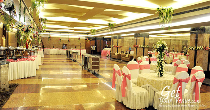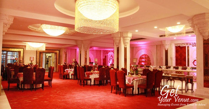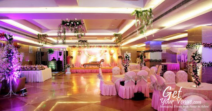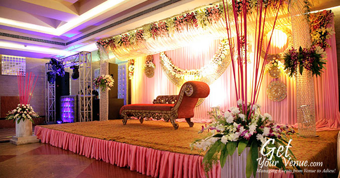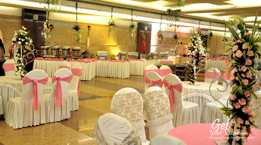 Stylish interiors, stunningly beautiful lighting effects and comfortable seating arrangements make this banquet hall perfect for a glittery wedding affair.