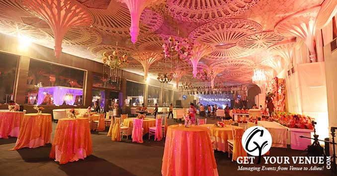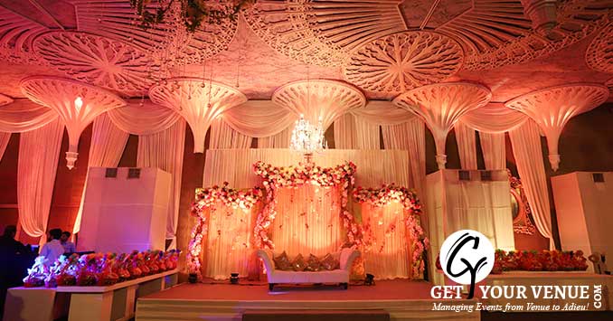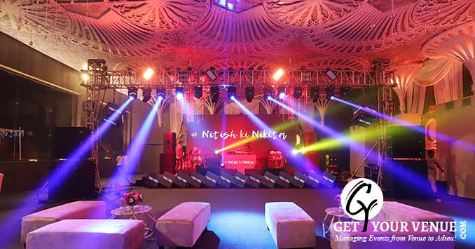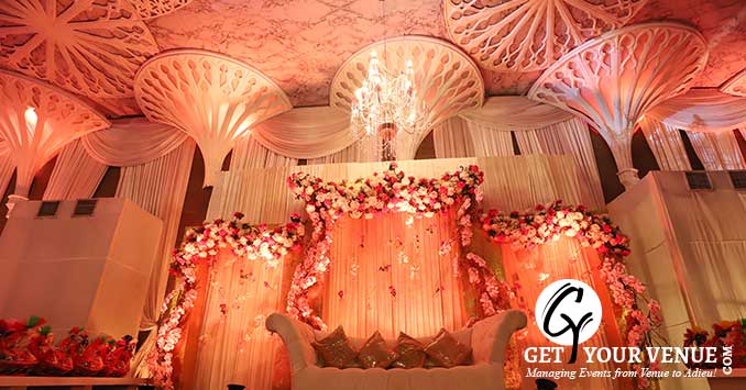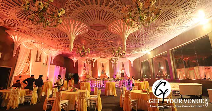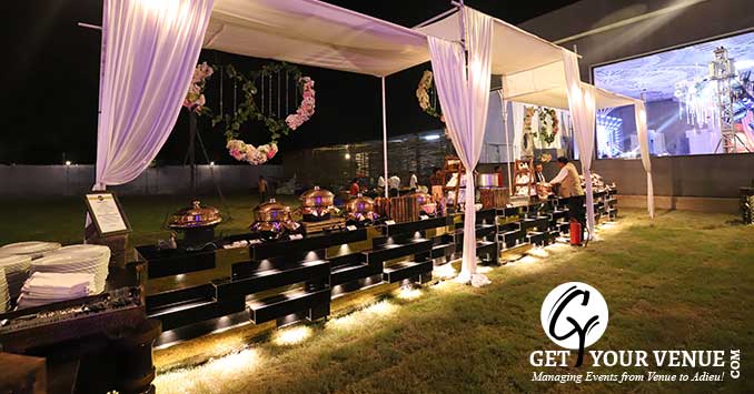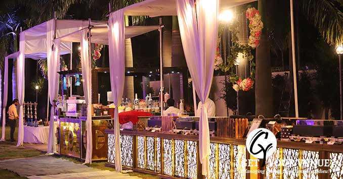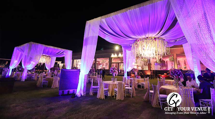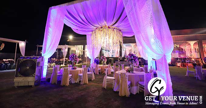 The vast expanse of verdant lawns adds subtle charm to your wedding venue. It ensures your esteemed guests having enough room to meet and greet without bumping into each other. Lovely lighting effect and floral décor make the space more elegant.