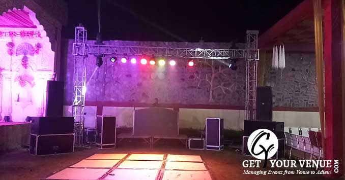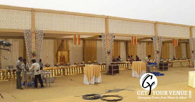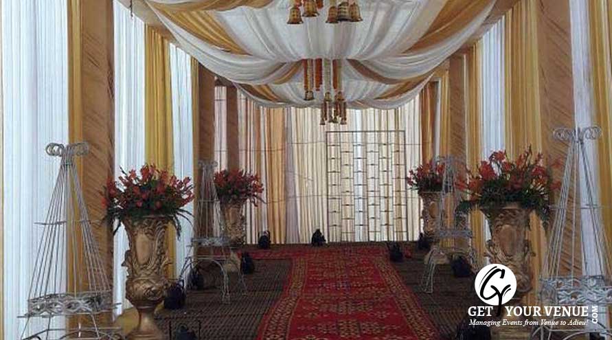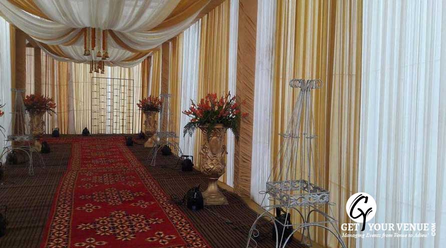 The vast expanse of verdant lawns adds subtle charm to your wedding venue. It ensures your esteemed guests having enough room to meet and greet without bumping into each other. Lovely lighting effect and floral décor make the space more elegant.