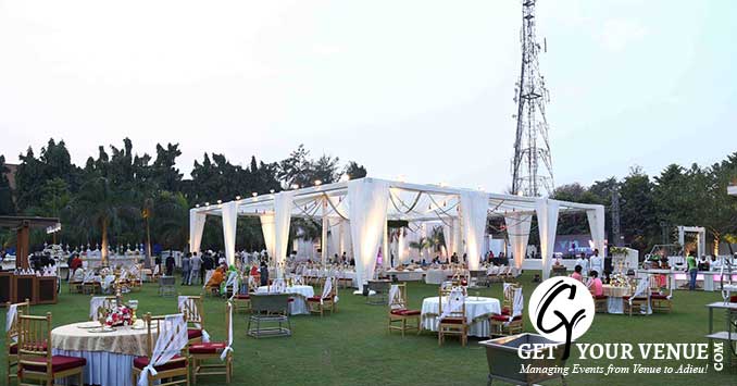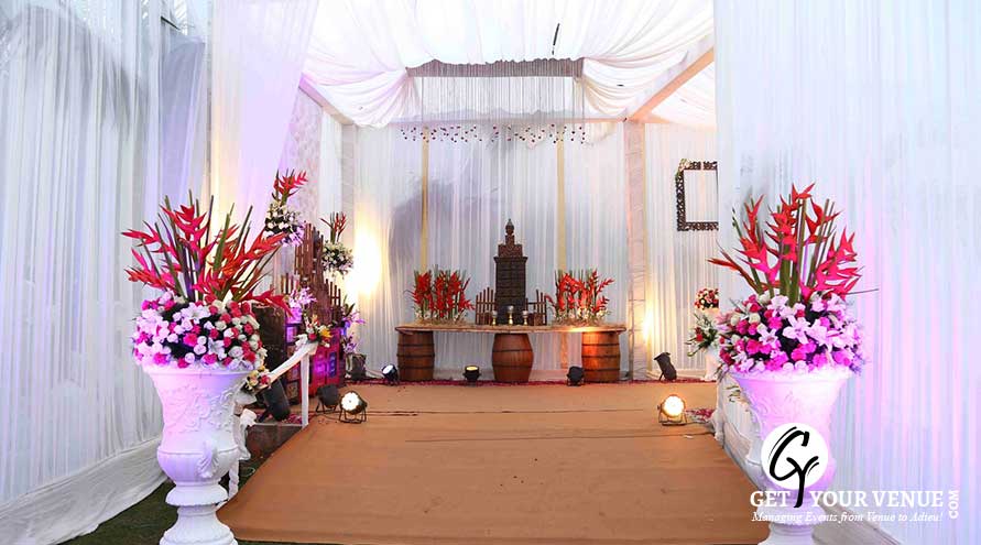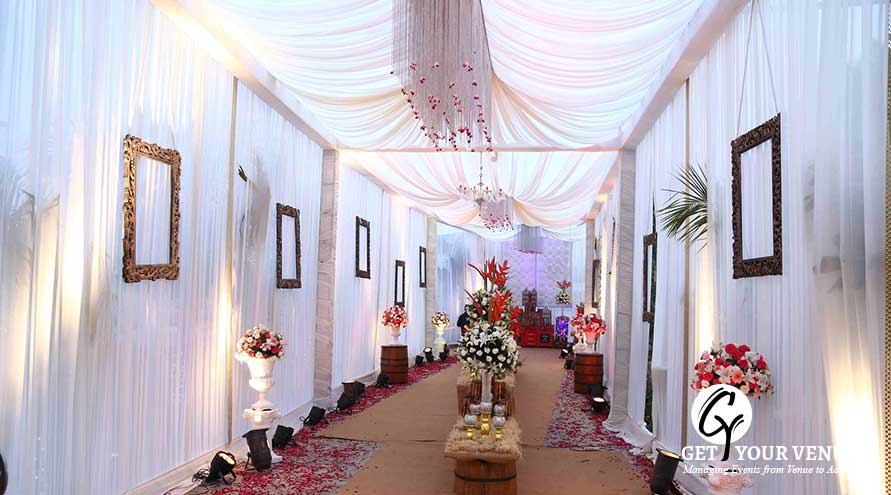The vast expanse of lush green lawns adds subtle charm to your wedding venue. It ensures your esteemed guests having enough room for the meet and greet without bumping into each other. Lovely lighting effect and floral décor make the space more elegant.