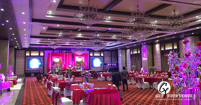 Elite Ball room- Spread over the area of 11,000 sq. ft, this banquet hall in Delhi is ideal for a gathering of 700 people.