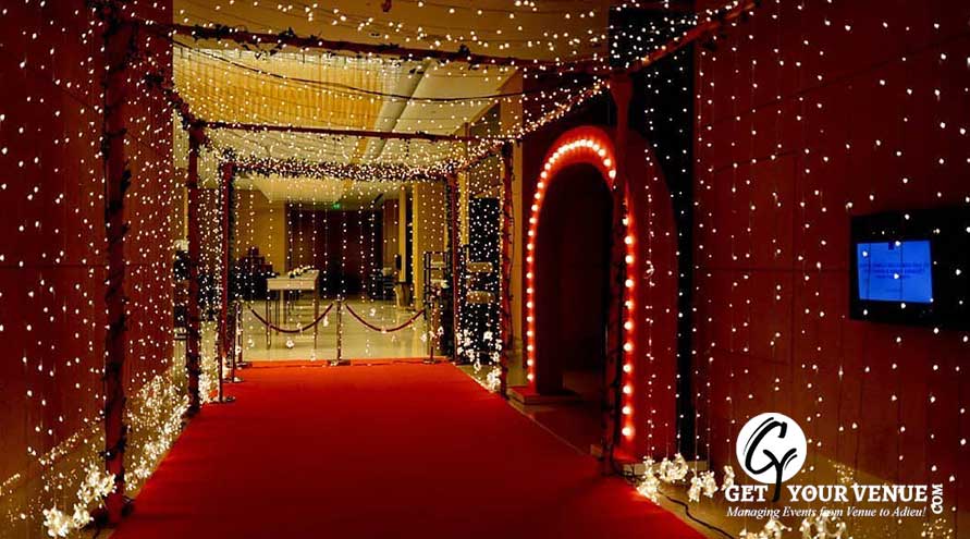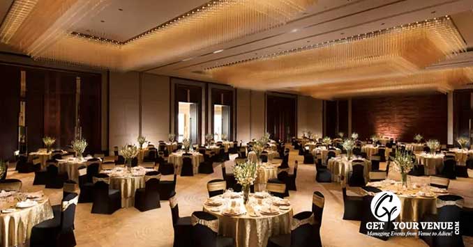 GRAND BALLROOM - The pillar-less Grand Ballroom is spread across a ground area of 7,555 sq. ft. and 24 ft. in height. It is one of the largest and most luxurious spaces in Central Bengaluru with a dedicated entrance. This room can accommodate a crowd of 1200 people and is the best option for large scale wedding and events. It comes with a package of all the basic amenities, high-speed Wi-Fi provision and well- trained staff if the hotel.