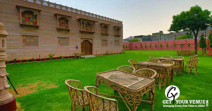 Poolside Lawn: If you are planning a large event like a wedding, then this marriage venue in Jaipur will meet all your expectations. With the space area of 7,602 sq. ft., it allows you to invite up to 600 guests.