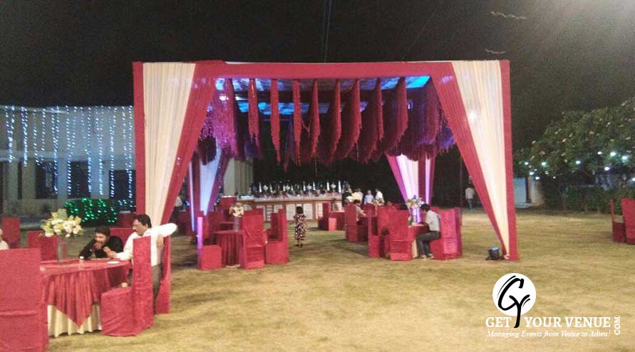 The vast expanse of verdant lawns adds subtle charm to your wedding venue. It ensures your esteemed guests having enough room to meet and greet without bumping into each other. Lovely lighting effect and floral décor make the space more elegant.