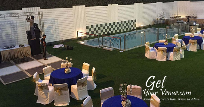Poolside Lawn – A hidden gem on the Mehrauli-Gurgaon road, this 3,000 sq ft area is made especially for small gatherings of 60 to 100 guests. Complete with a pool-side view and an elegant outdoor setting, it is perfect for evening soirées like Mehendi ceremonies, Sangeet functions, and cocktail parties.