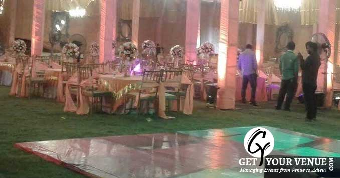 The vast expanse of verdant lawns adds subtle charm to your wedding venue. It ensures your esteemed guests having enough room to meet and greet without bumping into each other. Lovely lighting effect and floral décor make the space more elegant.