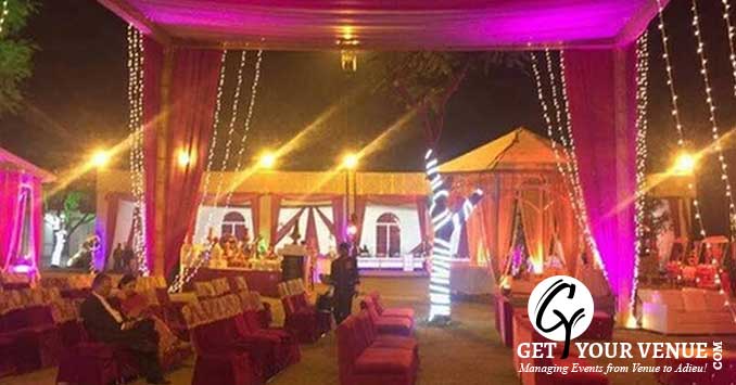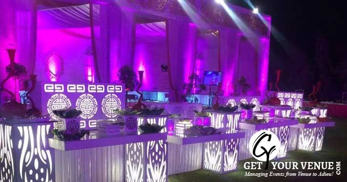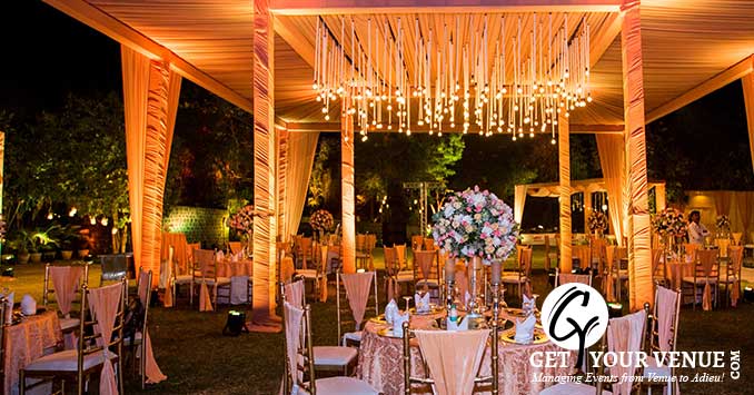 The vast expanse of verdant lawns adds subtle charm to your wedding venue. It ensures your esteemed guests having enough room to meet and greet without bumping into each other. Lovely lighting effect and floral décor make the space more elegant.