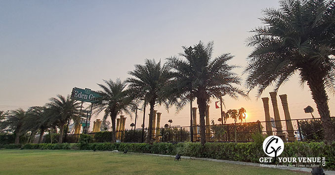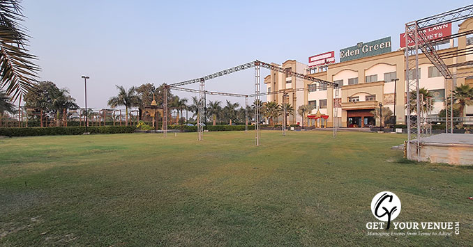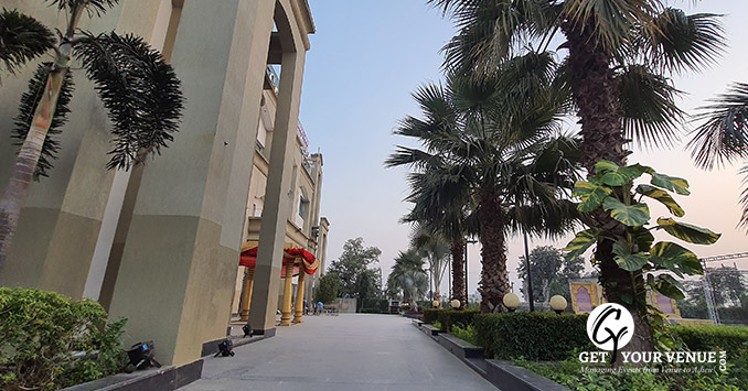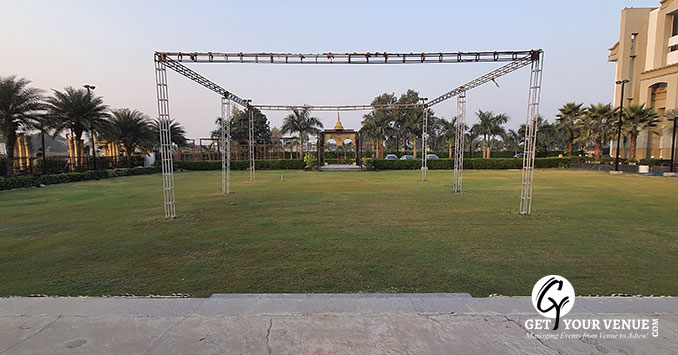 Lawn (Front Lawn)- If you are looking for an open space to plan your wedding, this spacious lawn will do the purpose.The front lawn has an area of 40,000 sq.ft. and can accommodate guests up to 800. It is ideal to host your wedding, reception or any pre-wedding events.