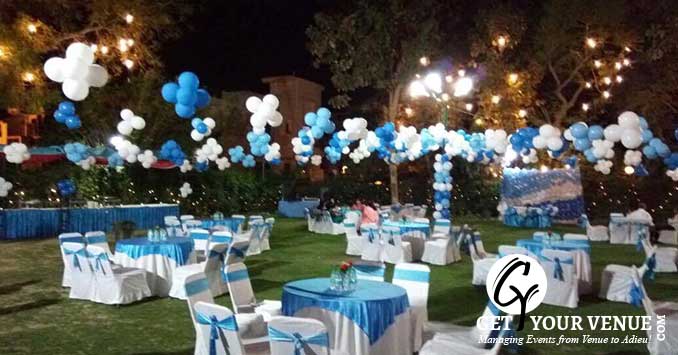 The vast expanse of verdant lawns adds subtle charm to your wedding venue. It ensures your esteemed guests having enough room to meet and greet without bumping into each other. Lovely lighting effect and floral décor make the space more elegant.