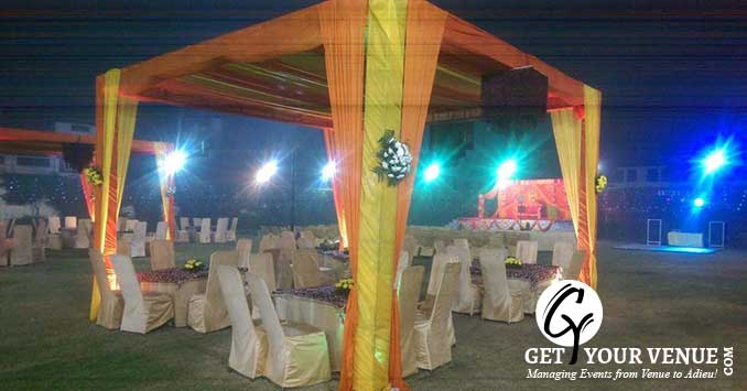 The vast expanse of verdant lawns adds subtle charm to your wedding venue. It ensures your esteemed guests having enough room to meet and greet without bumping into each other. Lovely lighting effect and floral décor make the space more elegant.