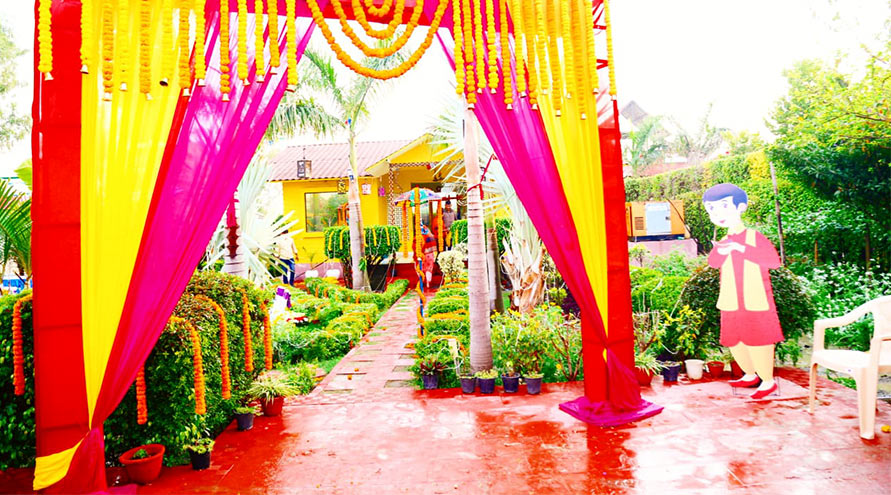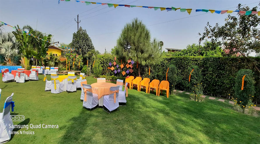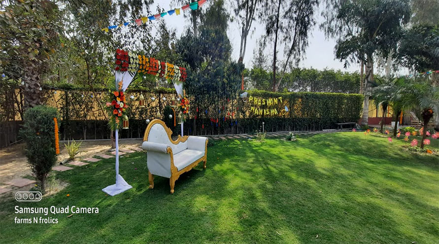 Farms N Frolics, Noida, is a beautiful lush green venue with an organic farmhouse located in Farm 23 b Green Beauty, Sector 135. The location is absolutely picturesque with lush green lawn, a beautiful cottage with three bedroom in the backdrop and a stunning swimmimg pool. It is a great choice to host small parties and pre-wedding functions.