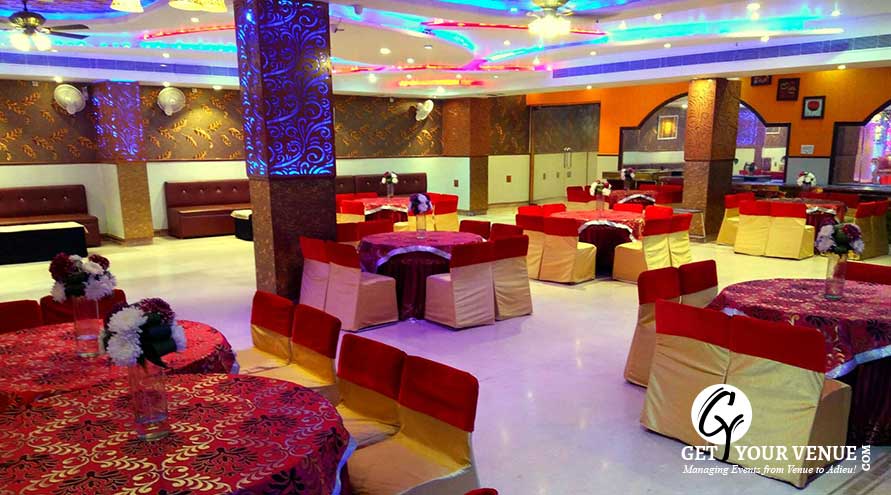Stylish interiors, stunningly beautiful lighting effects and comfortable seating arrangements make this banquet hall perfect for a glittery wedding affair. The beautifully laid tables and chairs ensure an idyllic setting. The highly experienced and polite staff serves you with ultimate grace ensuring your comfort.
