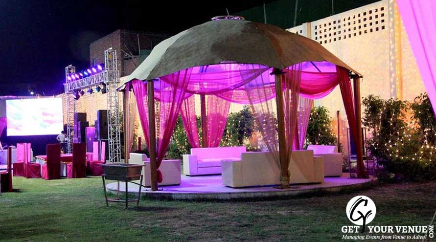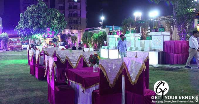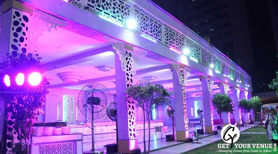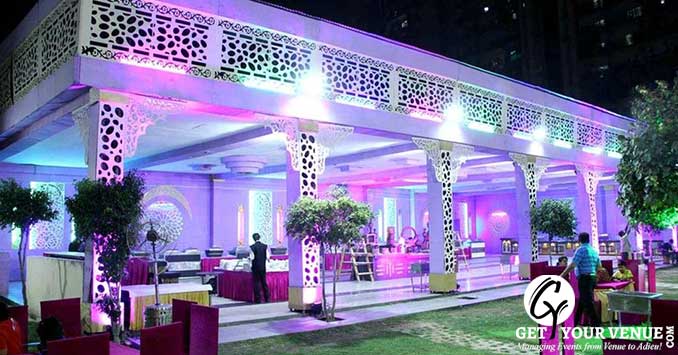 The Lawn can accommodate 600 people and is definitely one of the best venues for wedding functions. Veg meal is offered at INR 1300 per plate and non-veg meal is offered at INR 1500 per plate. The decoration is offered at INR 50,000. The wedding venue Noida for party places are equipped with beautiful environs. Fire crackers and hawan is also allowed in the venue. Hassle free booking can be easily done in the venue. The management is quite efficient and always ready to offer great help to the guests.