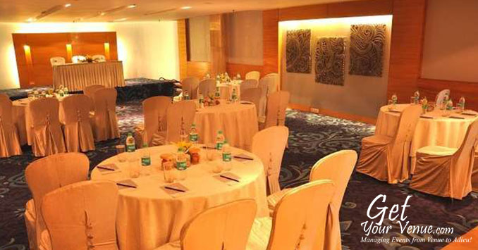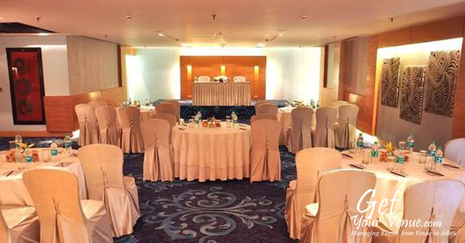 Stylish interiors, stunningly beautiful lighting effects and comfortable seating arrangements make this banquet hall perfect for a glittery wedding affair.