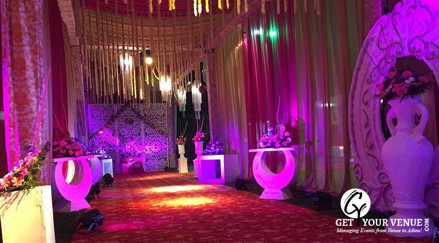 Hall: Spread over 8,869 sq. ft, this fully air-conditioned banquet hall provides you with ample space to host a party for 700 guests. It has also a parking space for 250 cars.