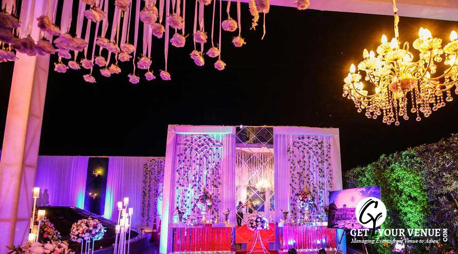 Stylish interiors, stunningly beautiful lighting effects and comfortable seating arrangements make this banquet hall perfect for a glittery wedding affair.
