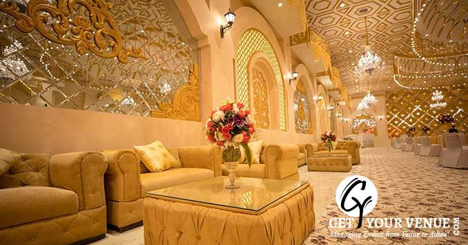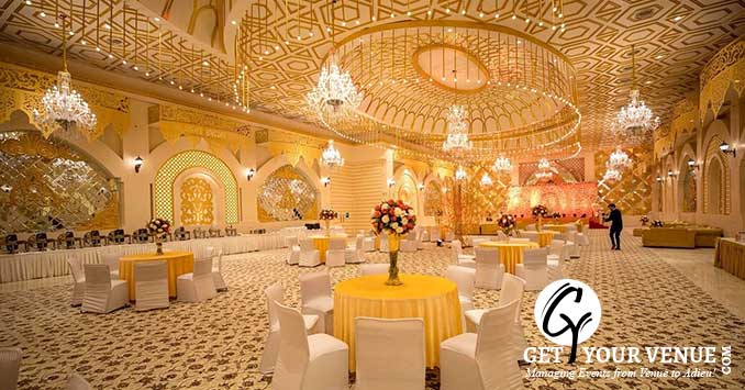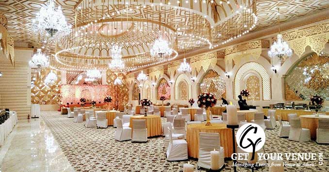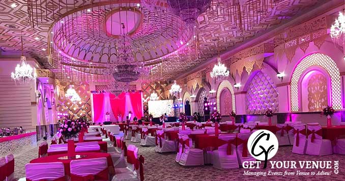 Stylish interiors, stunningly beautiful lighting effects and comfortable seating arrangements make this banquet hall perfect for a glittery wedding affair.