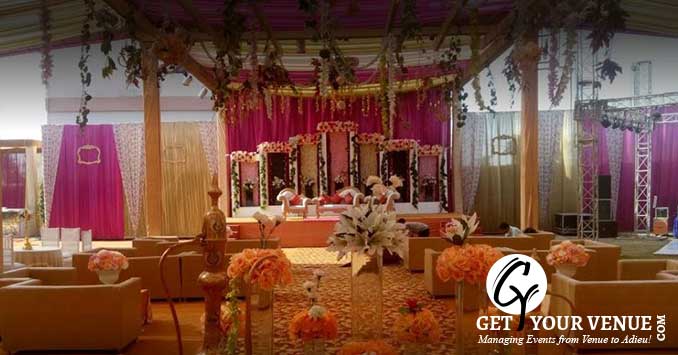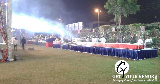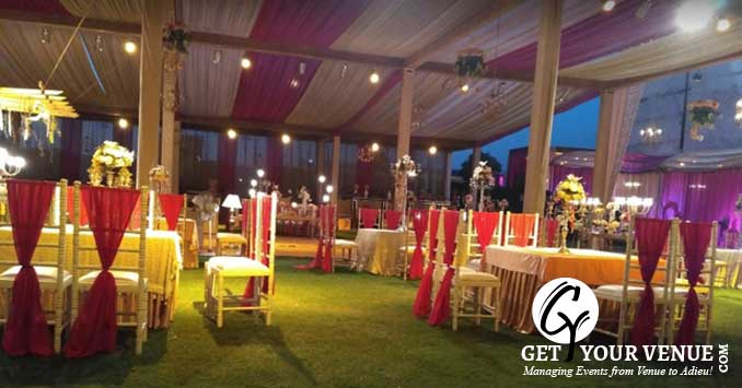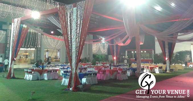 The vast expanse of verdant lawns adds subtle charm to your wedding venue. It ensures your esteemed guests having enough room to meet and greet without bumping into each other. Lovely lighting effect and floral décor make the space more elegant.