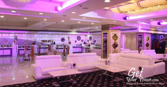 Stylish interiors, stunningly beautiful lighting effects and comfortable seating arrangements make this banquet hall perfect for a glittery wedding affair.