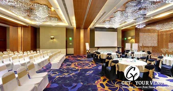 Stylish interiors, stunningly beautiful lighting effects and comfortable seating arrangements make this banquet hall perfect for a glittery wedding affair.
