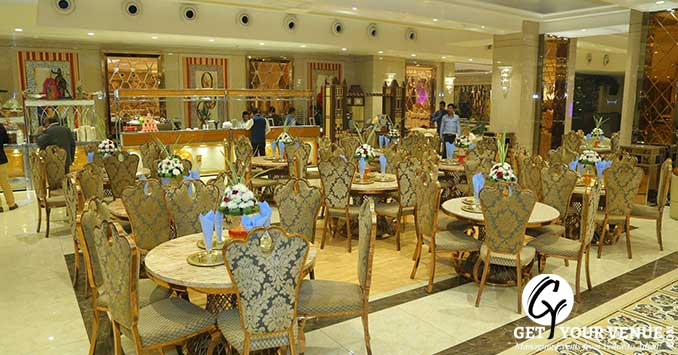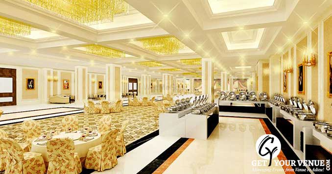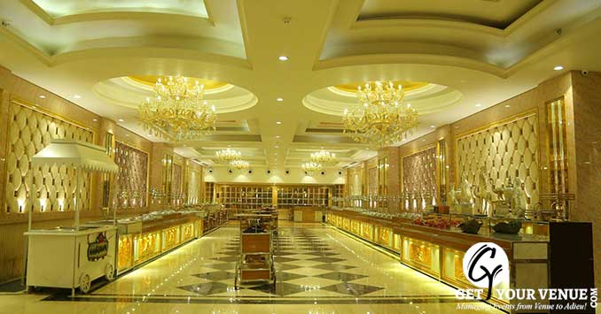 Queen Hall: With the space area of 3,500 sq. ft, this fully air-conditioned banquet hall provides the occupancy of 700 people.