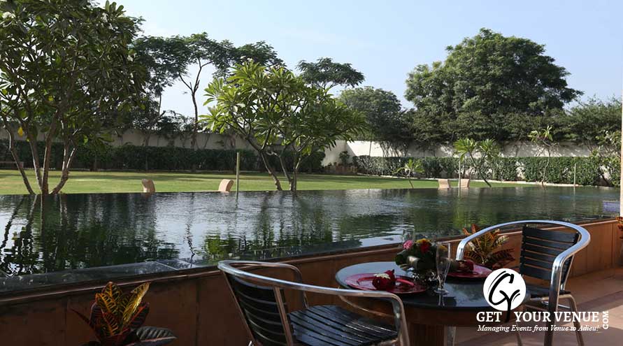 The vast expanse of verdant lawns adds subtle charm to your wedding venue. It ensures your esteemed guests having enough room to meet and greet without bumping into each other. Lovely lighting effect and floral décor make the space more elegant.