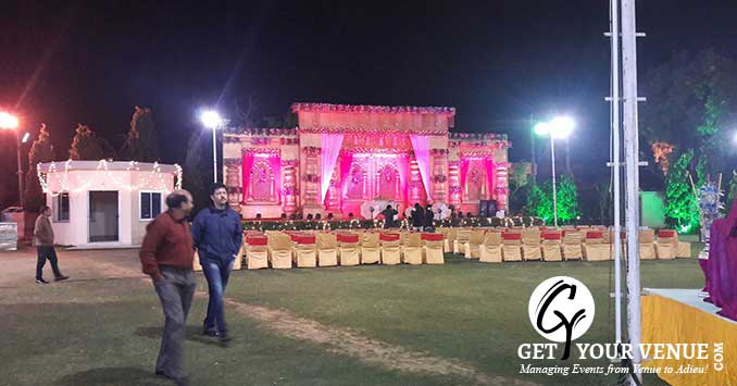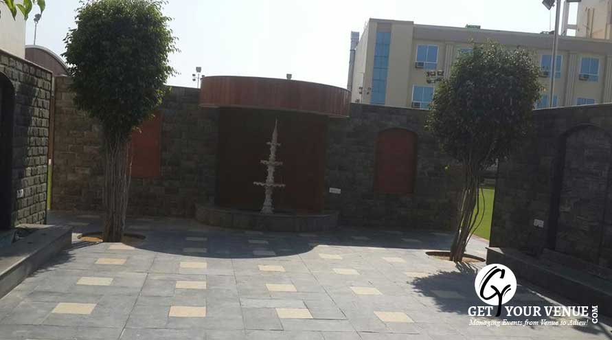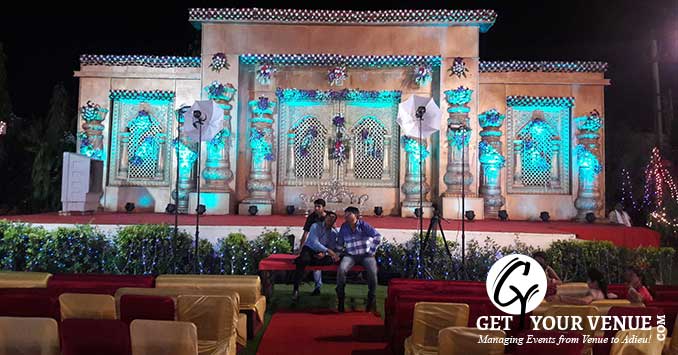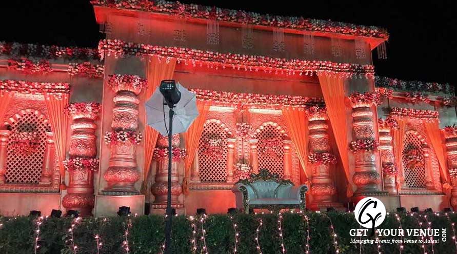 The vast expanse of verdant lawns adds subtle charm to your wedding venue. It ensures your esteemed guests having enough room to meet and greet without bumping into each other. Lovely lighting effect and floral décor make the space more elegant.