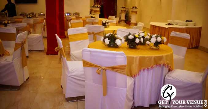 Banquet Hall : is equipped with amenities to make the event successful. The veg meal is available at INR 750 and non-veg meal is available at INR 850. The staff is friendly and always ready to offer help to the guests. In-house decoration is offered at INR 20,000. Outside alcohol is allowed to make the events happening and happy for the guests. The banquet hall is beautifully decorated using some of the trendiest décor elements. The in-house caterers offer a delectable spread of mouth-watering cuisines.