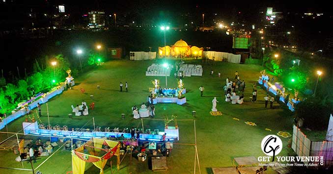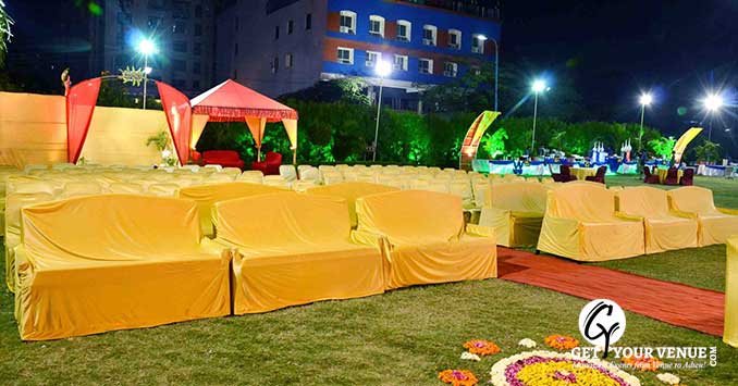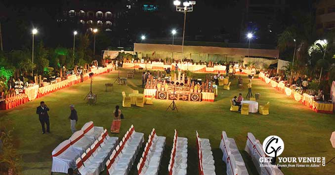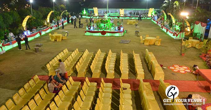Lawn 2: With the space area of 6,500 sq. ft, this banquet hall can accommodate up to 500 guests.