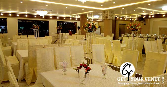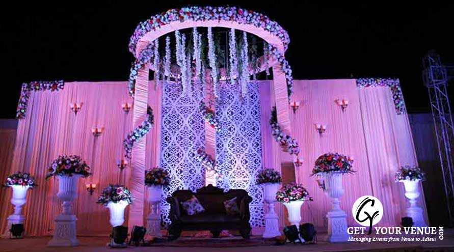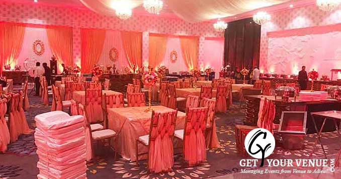 Stylish interiors, stunningly beautiful lighting effects and comfortable seating arrangements make this banquet hall perfect for a glittery wedding affair.