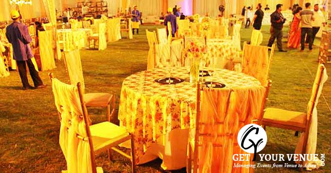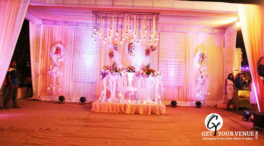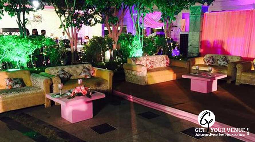The vast expanse of verdant lawns adds subtle charm to your wedding venue. It ensures your esteemed guests having enough room to meet and greet without bumping into each other. Lovely lighting effect and floral décor make the space more elegant.