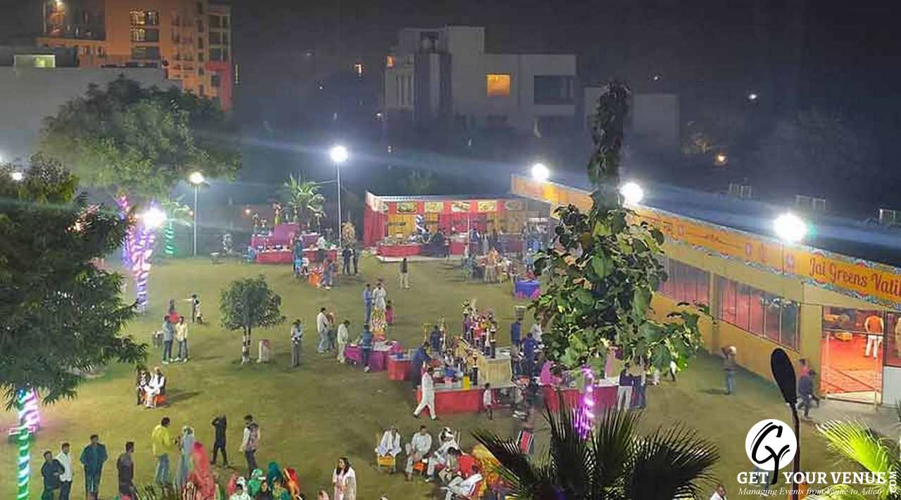 Jai Greens, Sonipat, is a modest and pocket-friendly destination to host your social and other auspicious ceremonies.It is ideal for hosting private parties, birthdays, anniversaries, kitty parties, family get-togethers, bridal showers, seasonal festive events, reunions, cultural programs, community gatherings, engagement, and pre-wedding ceremonies.The venue offers on-site decorators to adorn your space with flowers, colorful entrance design, traditional mandap, and other ornate accessories.