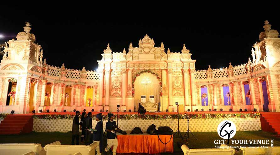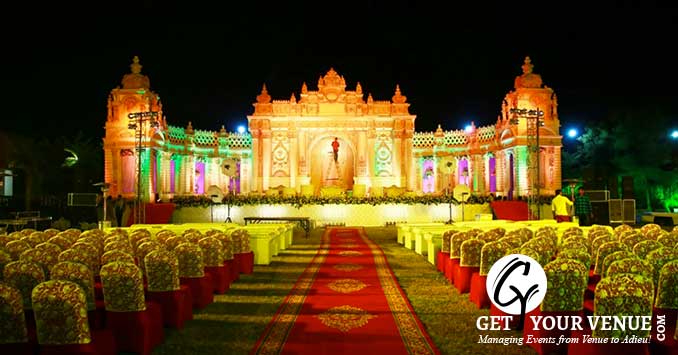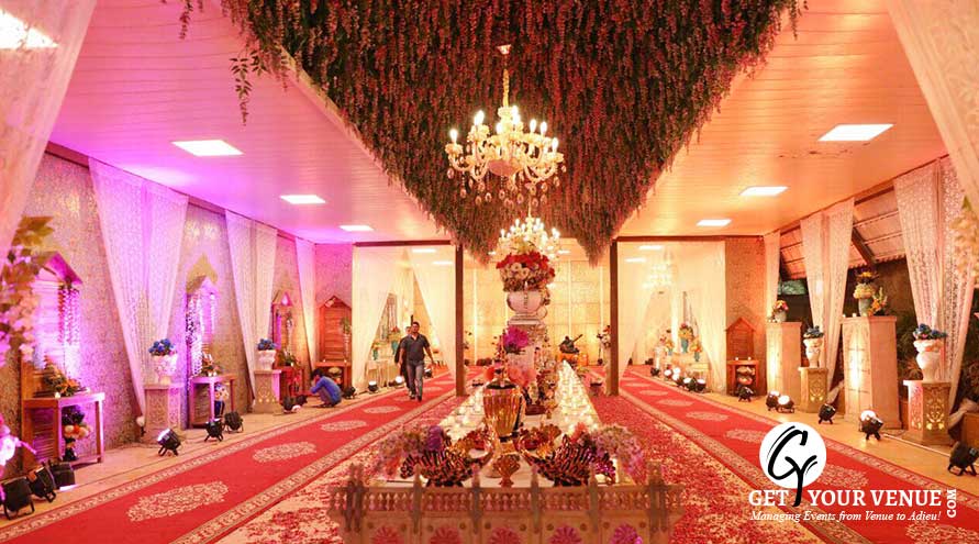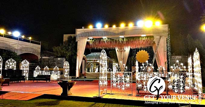 Aesthetically pleasing and opulent décor options available to give an elegant look to your wedding decorations. The vast expanse of verdant lawns adds subtle charm to your wedding venue.