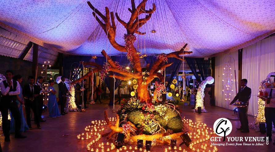 It ensures your esteemed guests having enough room to meet and greet without bumping into each other. Lovely lighting effect and floral décor make the space more elegant.