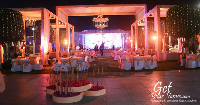 Poolside Area Lawn – This 26,785 sq ft large lawn invites you and your guests to lie back and enjoy its unmatched beauty. This facility is a large swimming pool with fresh water surrounded by the green garden, blooming flowers combining peacefulness and calmness that truly give you a respite from the rest of the world. Here you can invite 525 to 800 guests.